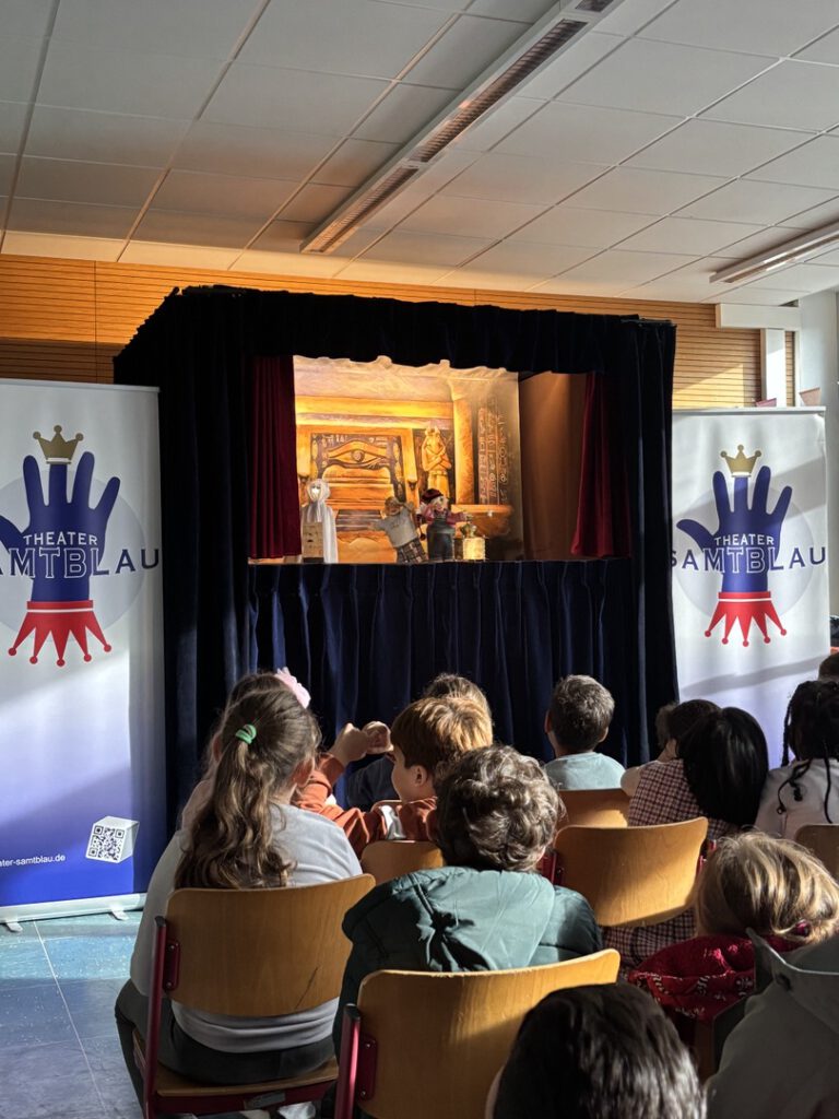 Das dritte Jahr in Folge besucht uns das Theater Samtblau und begeistert die Grundschüler mit selbstgeschriebenen Stücken und liebevoll ausgestaltetem Bühnenbild.